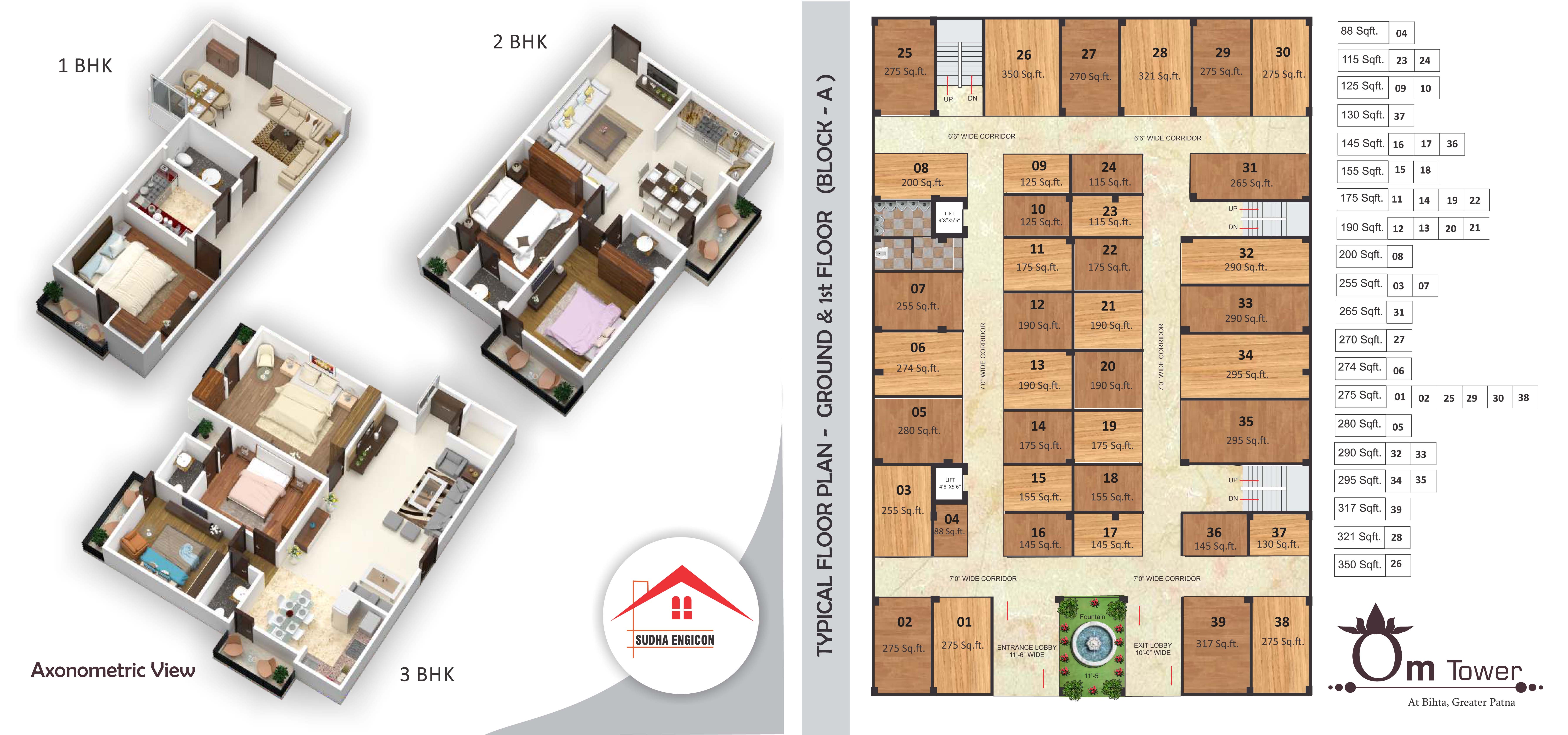 Anticipating the eminent development towards the Bihta Greater Patna, Sudha Engicon Comes up with premier residential Project Near IIT Patna "Om Tower." This project is being developed in an area which is going to be the future of scores of other residential neighborhood that has an excellent infrastructure and access to the city;s commercial sectors. The Project is packed with ultra modern amenities like landscaped court with children's play area, CCTV surveillance, spaces for recreational activities and more. Om Tower has wide open spaces with lush green surroundings. The aesthetic features and design coupled with group's commitment towards transparency and integrity in all aspects would definitely give every customer an opportunity of living in a high rise.